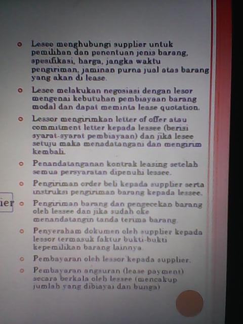 Konsep kerja perusahaan Leasing itu, Lessee mnghubngi Supplier utk pmlihn dn pntuan jns brng